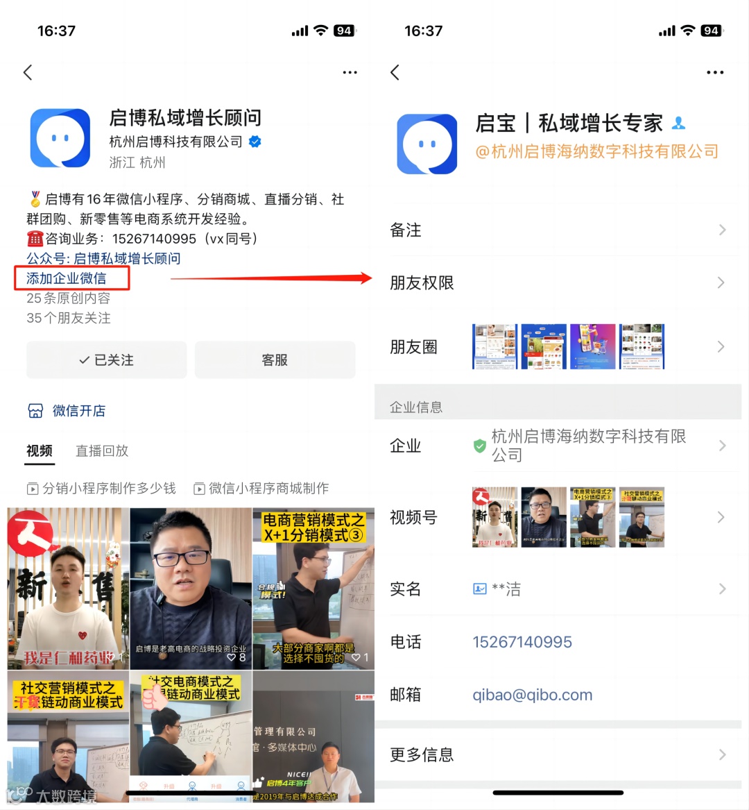4、视频号主页介绍内添加手机号、微信号、公众号名字、官方网址等,将视频号的流量通过非企微的方式导入私域中。