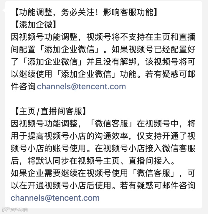 也就是说已经绑定过企业微信的企业不会受到此次调整的影响,并且后续不会影响到企业微信在视频号内的继续使用效果。