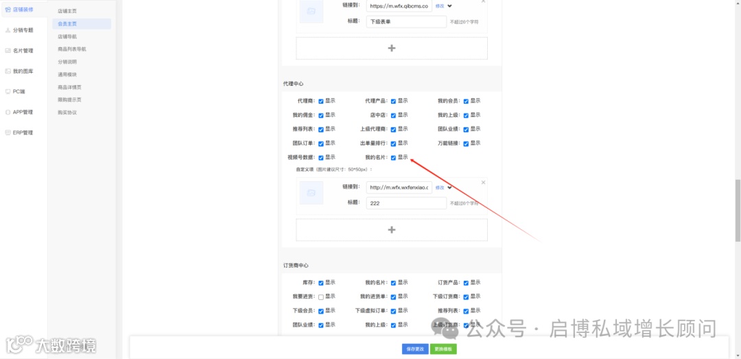 会员主页增加设置项,代理中心可控制是否显示代理商名片