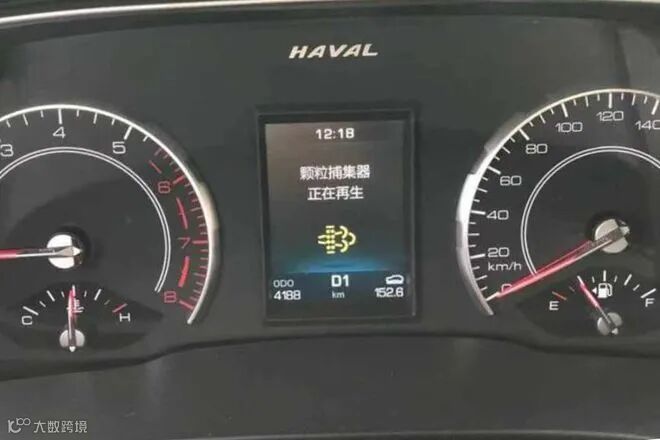 DPF主动再生通过压差传感器监控排气背压,当背压上升到一定数值后;ECU控制专用喷嘴往排气管理喷射柴油,在排气管中形成燃烧火焰使DPF内部温度上升到600℃~620℃,将捕捉到的颗粒物燃烧成CO2排出去。