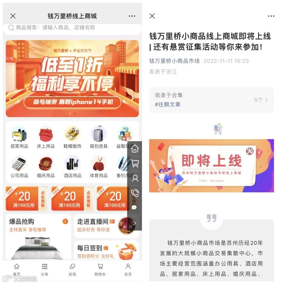 苏州“钱万里桥”小商品市场通过启博微分销商城完善线上消费场景,并借助门店导购引流等营销方式将线下客流导入线上,以“钱万里桥小商品市场”微商城与“公众号”两大核心阵地承接客流,并以限量优惠券激励顾客消费、完成会员转化,最终为“钱万里桥小商品市场”微商城沉淀私域资产,在行业同质化存量竞争率先找到突破口。