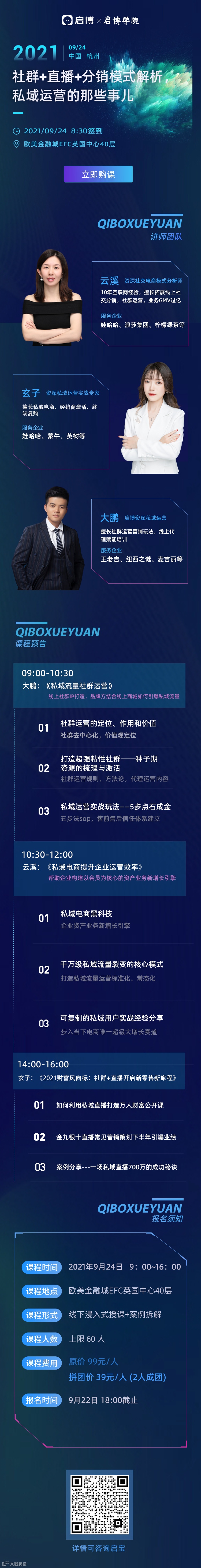 09月24日启宝邀请您来参加 启博学院第28期会议 ,从私域的角度切入,千万级专业操盘手为大家全面解析 社群+直播+分销模式 ,了解私域流量裂变的核心模式,共同探讨私域运营那些事儿,助力商家玩转直播分销,实现降本增效!