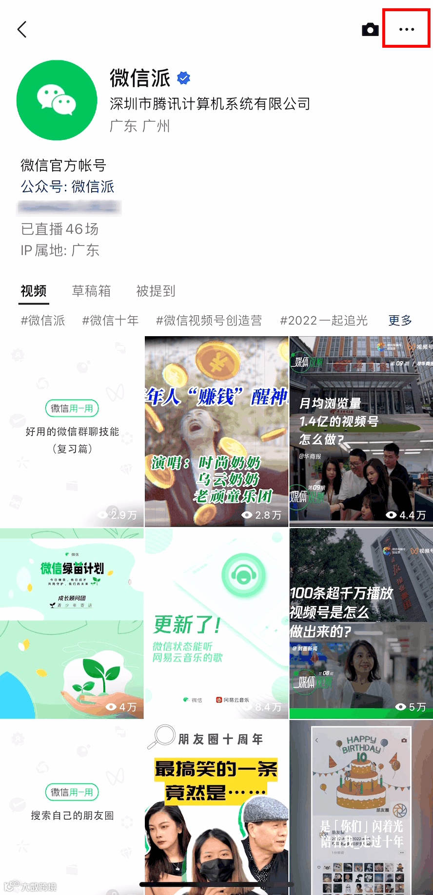 打开微信,“发现”→“视频号”→右上角小人→点击视频号头像,进入个人主页: