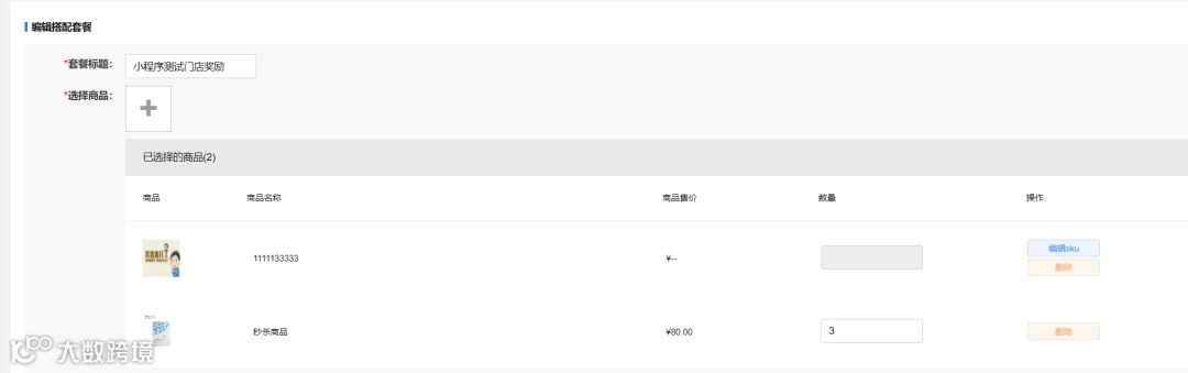 搭配套餐现在可以正常添加商品以及sku数量。