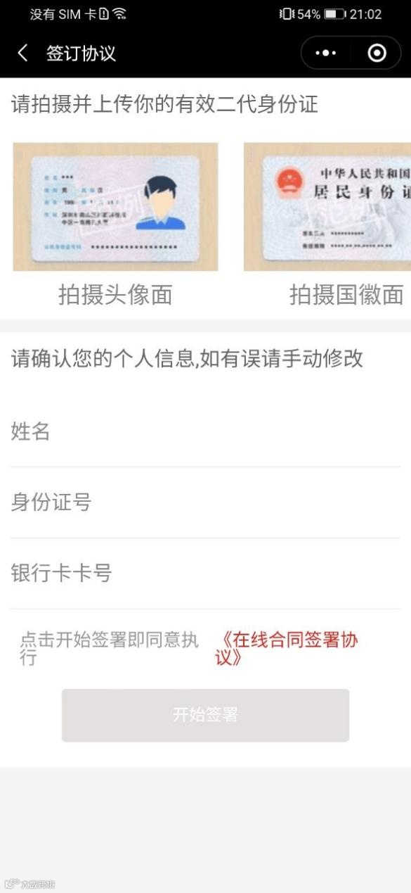 (2)小程序点击我要提现跳转签约页面;