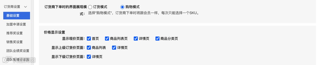 订货商设置,”是否允许下级订货商查看上级订货商价格”设置项修改为”订货商查看商品价格显示”;