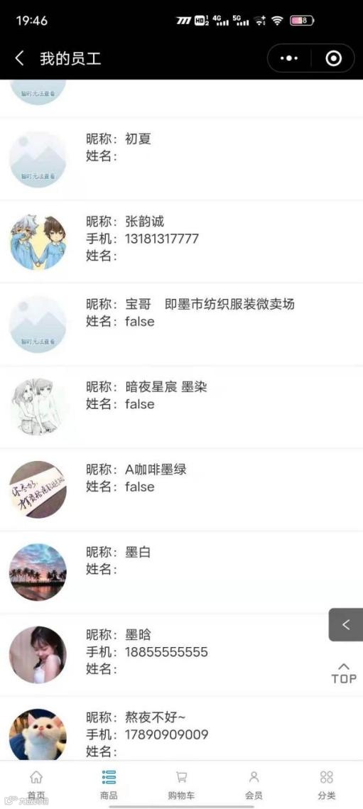 (1)查看小程序我的员工页面;