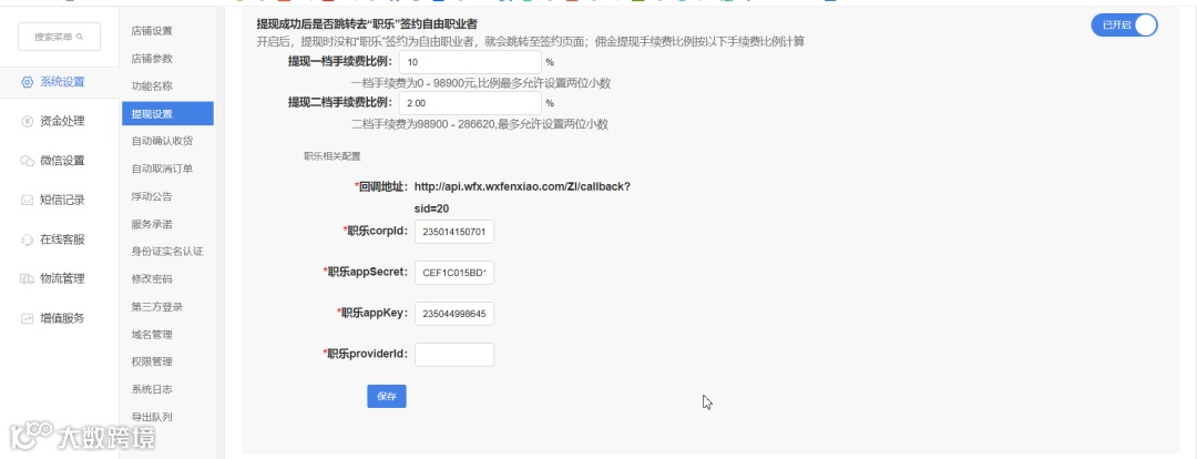 (1)开通职乐提现;