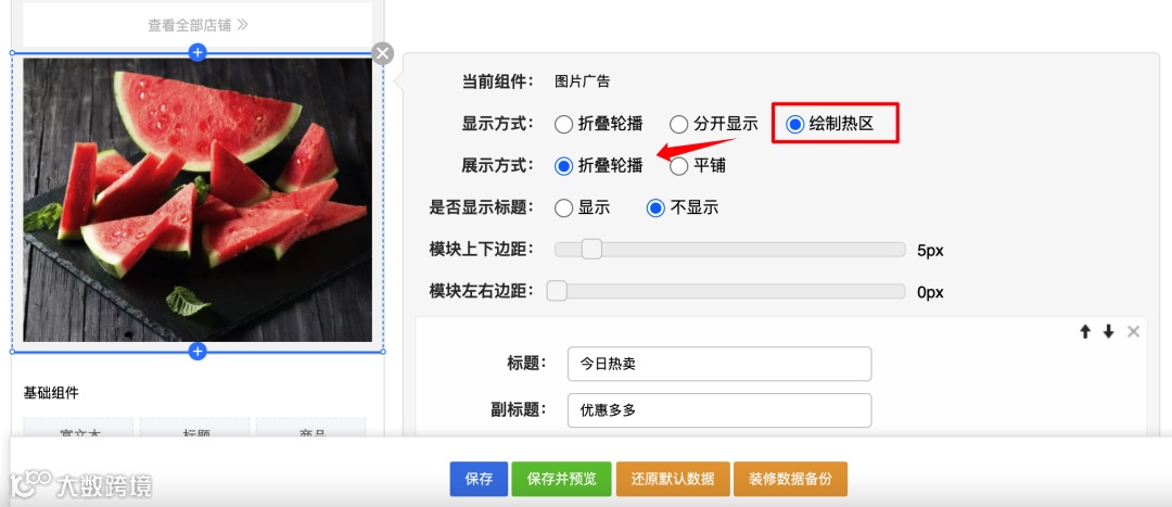 店铺装修图片广告组件优化,绘制热区可以叠加轮播效果;