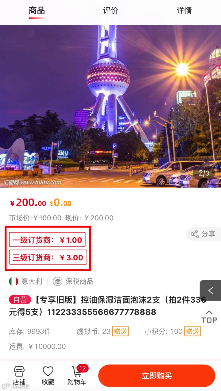(2)商品设置下级订货商价格,查看商品详情页;