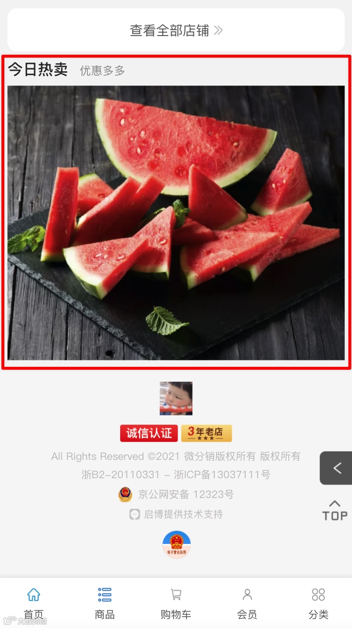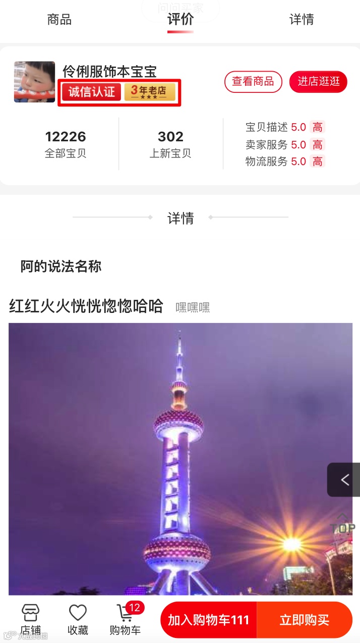 (2)选择是,手机端页面底部和商品详情页显示“几年老店”图标;