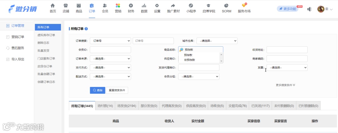 方便商家快速搜索出符合自己目标的商品名称订单列表根据商品模糊搜索输入关键字可以看到对应符合条件的商品;
