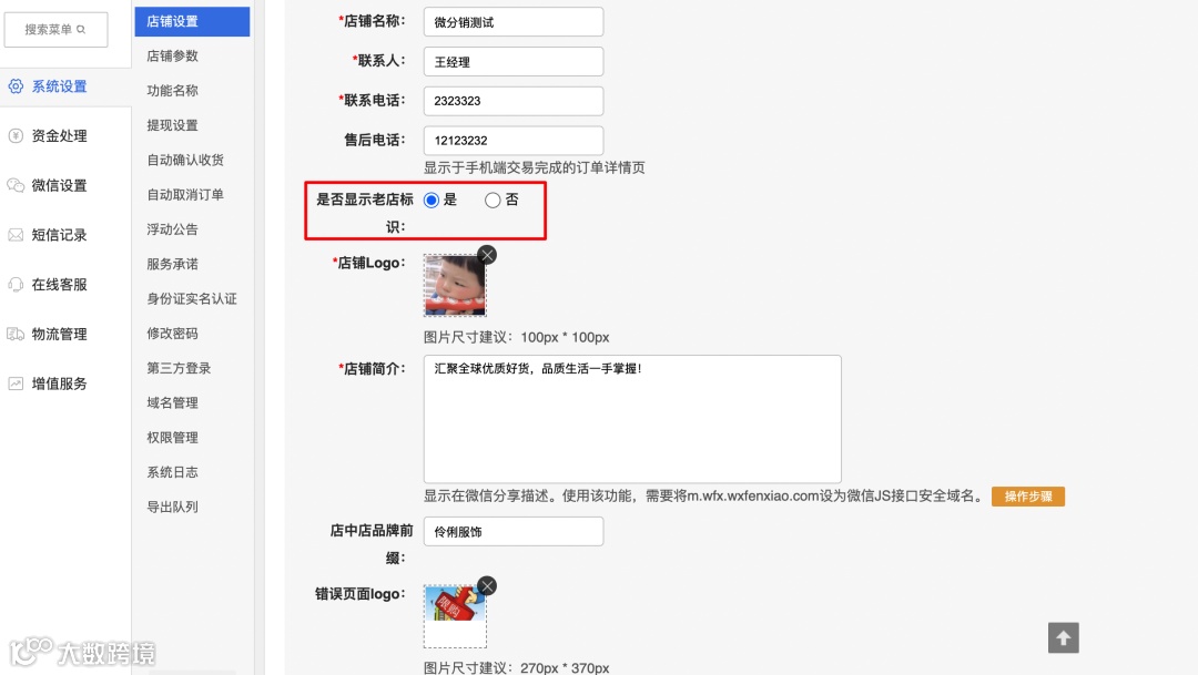 (1)商城注册时间大于等于三年显示“是否显示老店标识”选项,否则不显示;