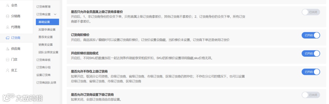 (1)开启订货商阶梯价、开启混批模式;