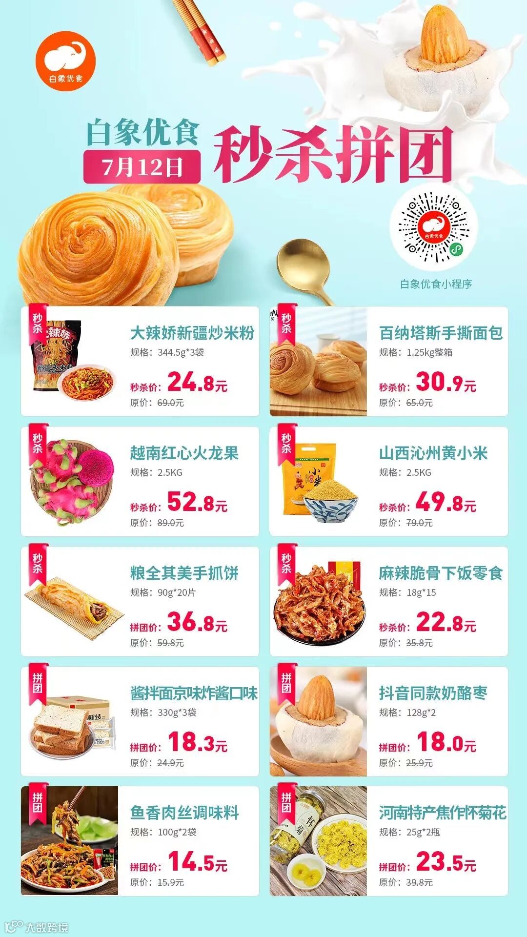 线上商品价格设置秒杀价格,定期发布秒杀拼团活动,价格设置相对于其他电商平台更具优势,在朋友圈和社群同步推送,吸引用户线上购买。