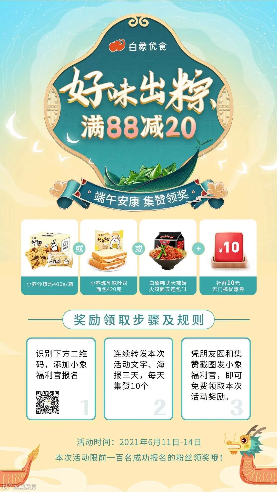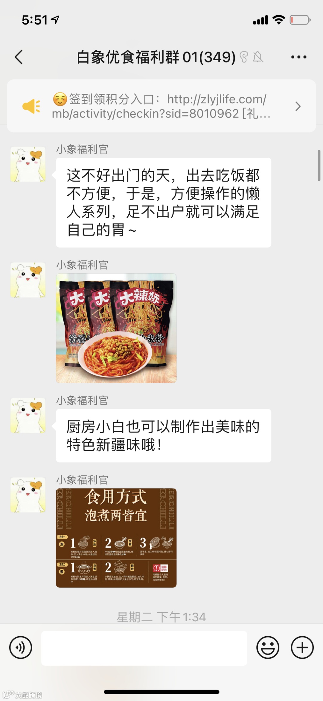 下单用户可加入“白象优食福利群”,每天群内发送活跃红包及早安海报,定时提醒社群用户签到领积分,且连续签到可获额外积分,培养用户习惯;
