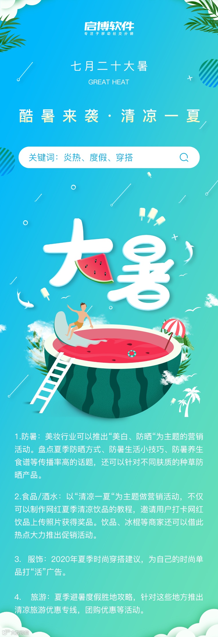 热点先知道,节日不慌张!启宝为各位电商人整理了7月份的营销节点提醒及建议,供大家参考。