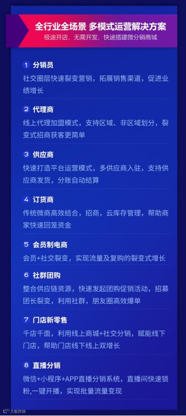 启博微分销拥有13年社交分销电商软件开发经验,为商家提供小程序微商城提供多样化经营解决方案,百余种营销功能、精准分佣结算能力、会员管理......同时还有专业商家运营团队助力陪跑起盘!