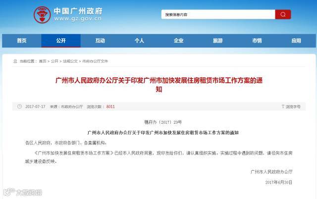 记者从广州市政府官网获悉,为稳定房地产市场合理预期,促进房地产市场平稳健康发展,广州市政府办公厅近日印发了《广州市加快发展住房租赁市场工作方案》。