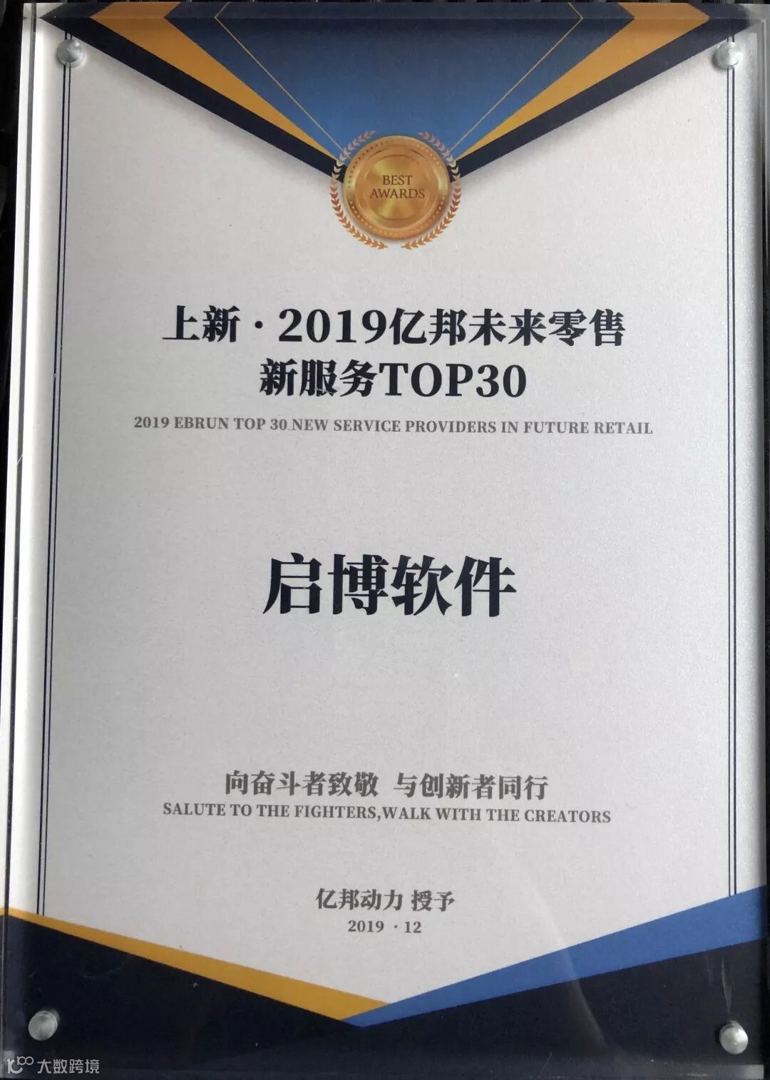 同期,颁发“2019亿邦未来零售榜单”,该奖项由亿邦未来零售评审团依据企业申报信息,从创新性、影响力、高成长性等纬度,进行独立评选。启博软件凭借其在社交分销领域杰出成绩斩获“亿邦未来零售新服务TOP30”奖项。