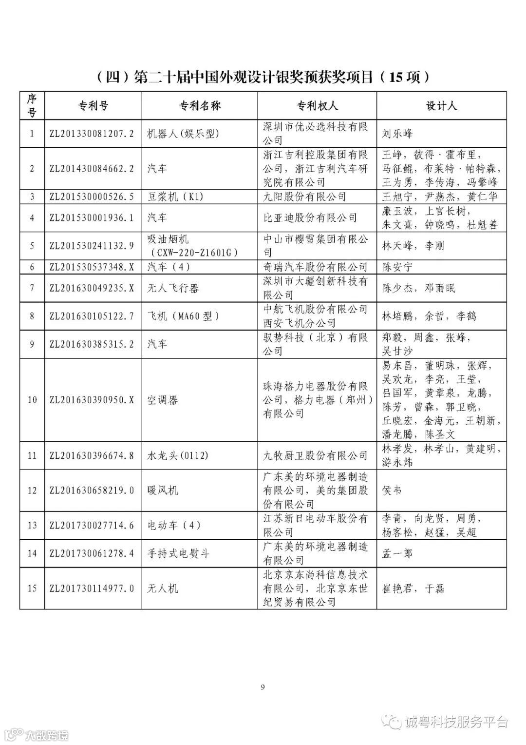 附件:第二十届中国外观设计银奖预获奖项目(15 项)