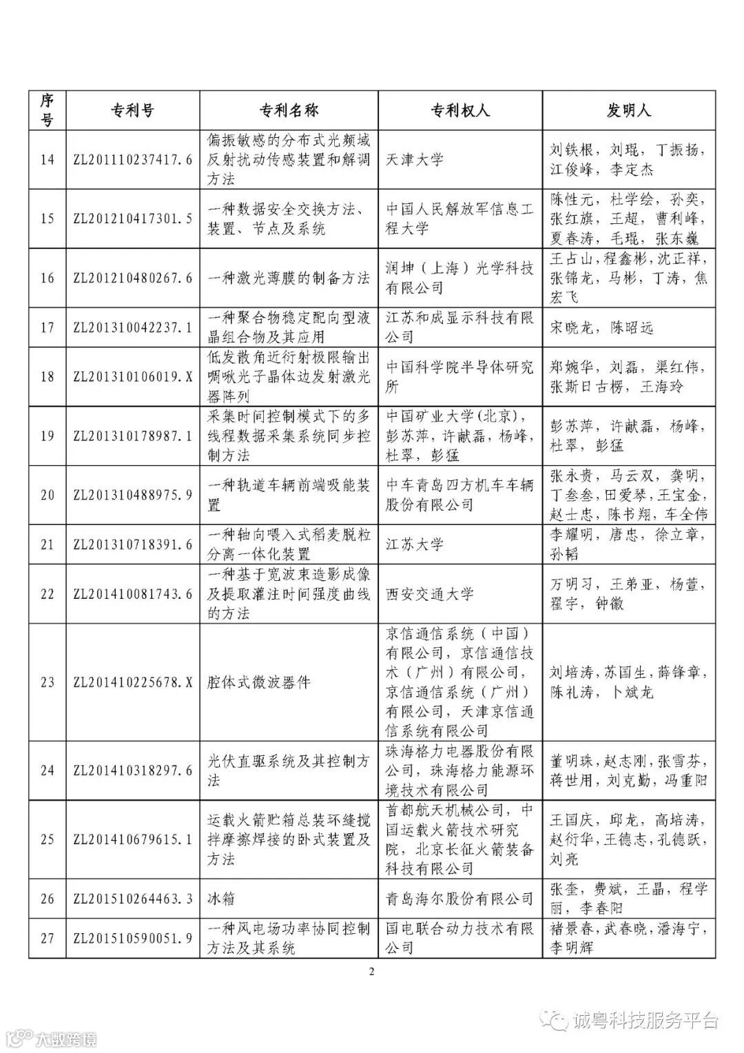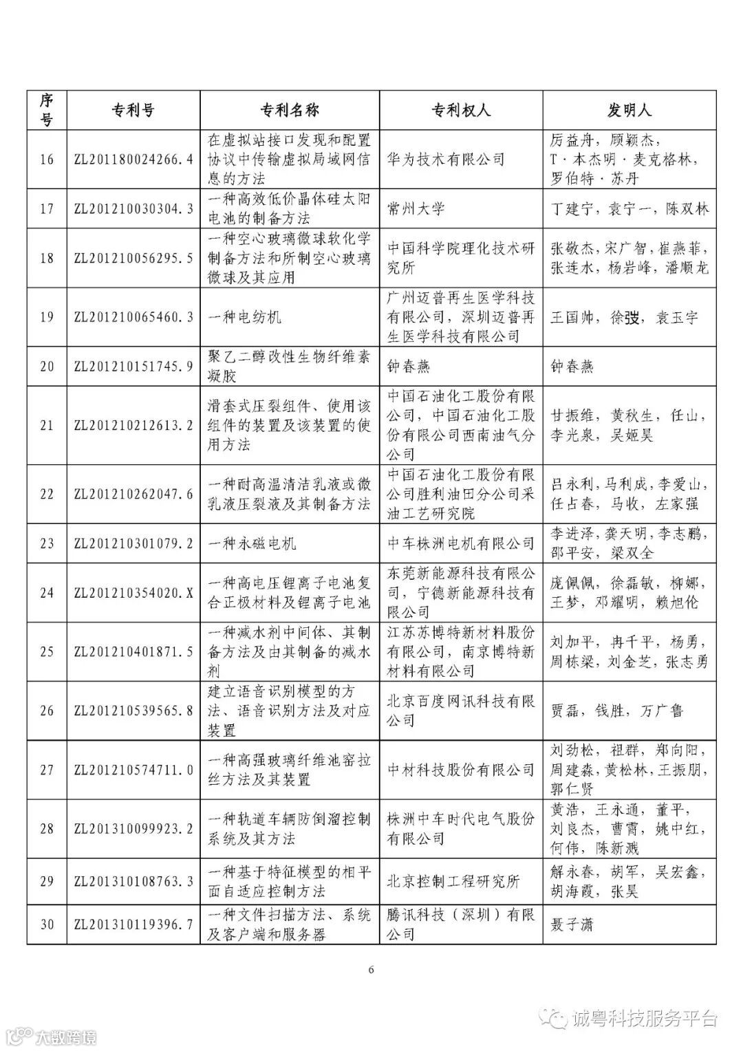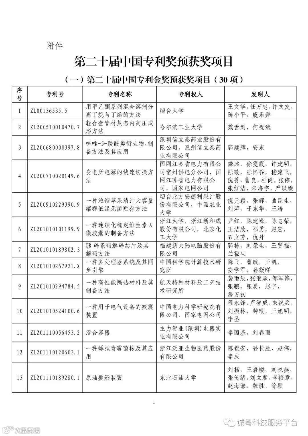 附件:第二十届中国专利金奖预获奖项目(30 项)