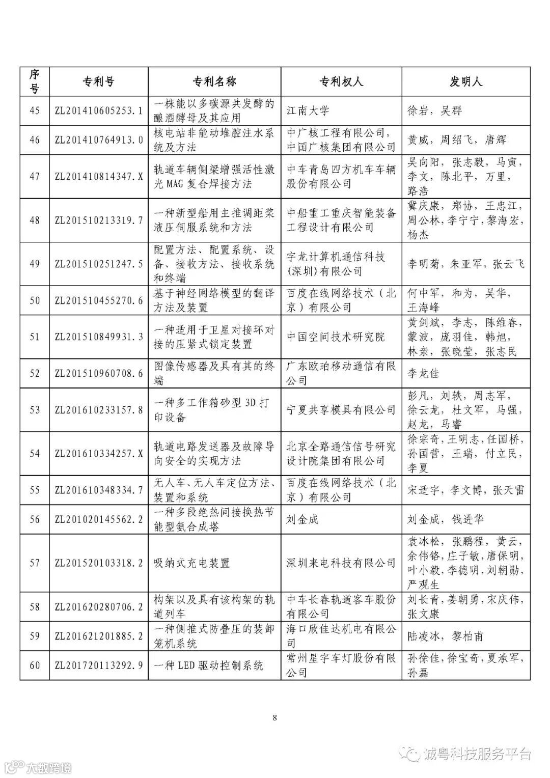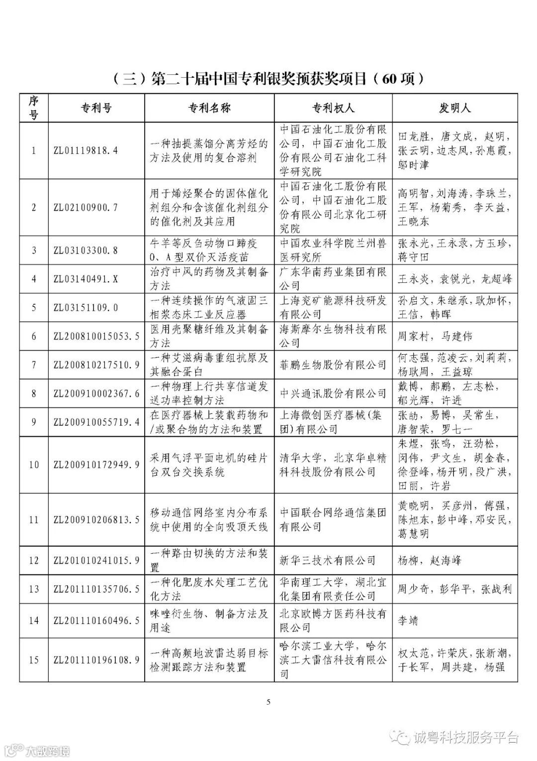 附件:第二十届中国专利银奖预获奖项目(60 项)