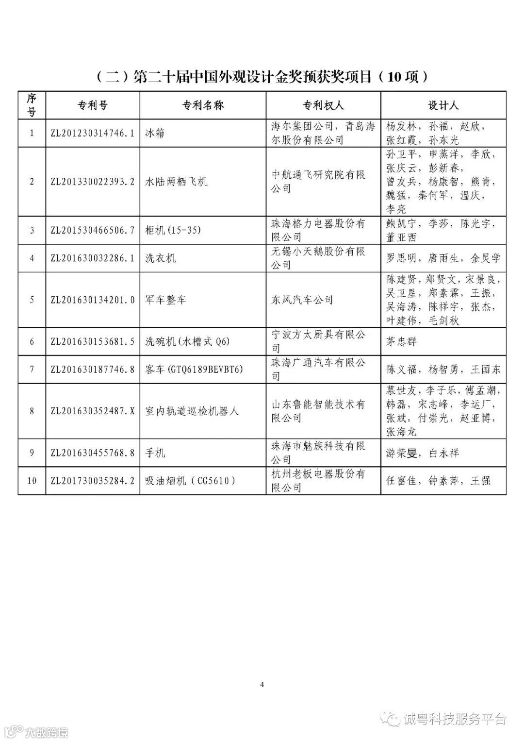 附件:第二十届中国外观设计金奖预获奖项目(10 项)