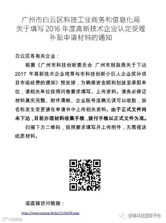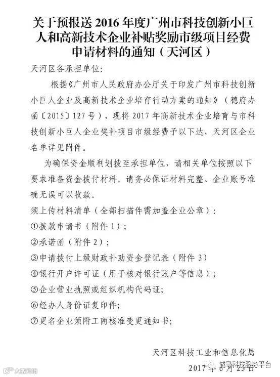 ★ 预报送2016年度广州市小巨人和高企补贴的通知 ★