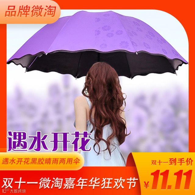 遇水开花黑胶晴雨伞