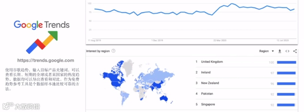 一般海关数据都是收费的,那么有没有免费的选择目标市场的平台呢,有,比如Google Trends,利用这个平台,输入目标产品关键词,可以查看长期、短期的全球或者某国家的热度趋势,数据均可以导出和对比,作为免费趋势参考工具,是个比较可靠的方法。但是它有自身的局限性,在此不一一分析。