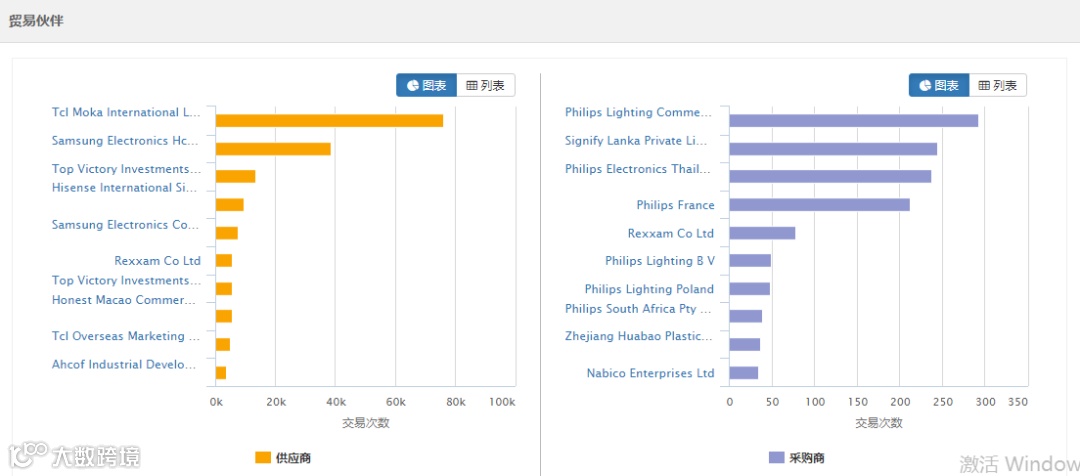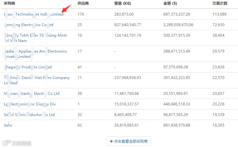 通过这个图表,我们大概能够看出LED产品出口的话,哪些国家的需求更加旺盛。另外我们可以点进某个采购商里面更详细的查看。