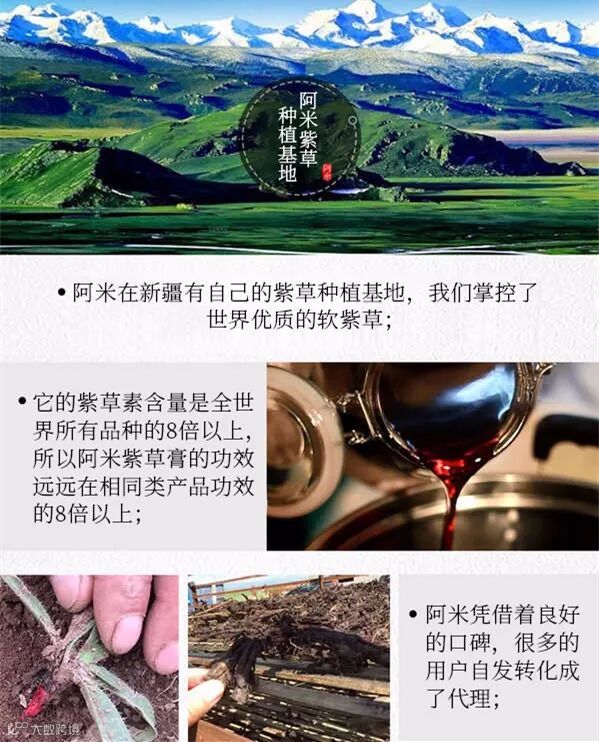紫草品牌本身就具有良好的口碑,很多用户自发转化成代理,推动产品的销售。