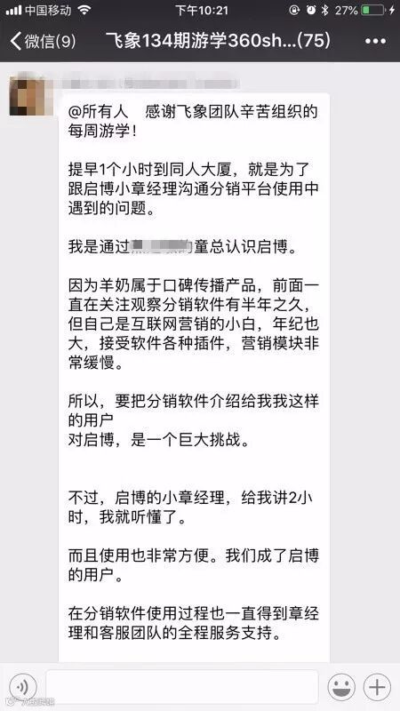 启博微分销模式的内容,也是在场伙伴们最为关注的话题之一。百万俱乐部伙伴莫端为大家带来了最为详细的微分销模式的介绍,从分销模式到代理分销模式、门店分销模式,以及最后的分红激励政策,每个伙伴都能在其中找到一个适合自己产品的借鉴模式。