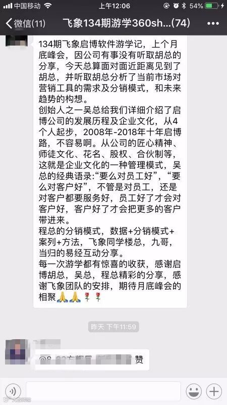 为期半天的游学活动,给每一位飞象成员都带去了不同的感悟和心得体会。大家聚集在一起对此次活动的感受进行分享总结,互相学习共同成长。其中关于他们对启博的认可和赞扬也是对我们最大的支持和鼓励,是我们不断向前的动力。