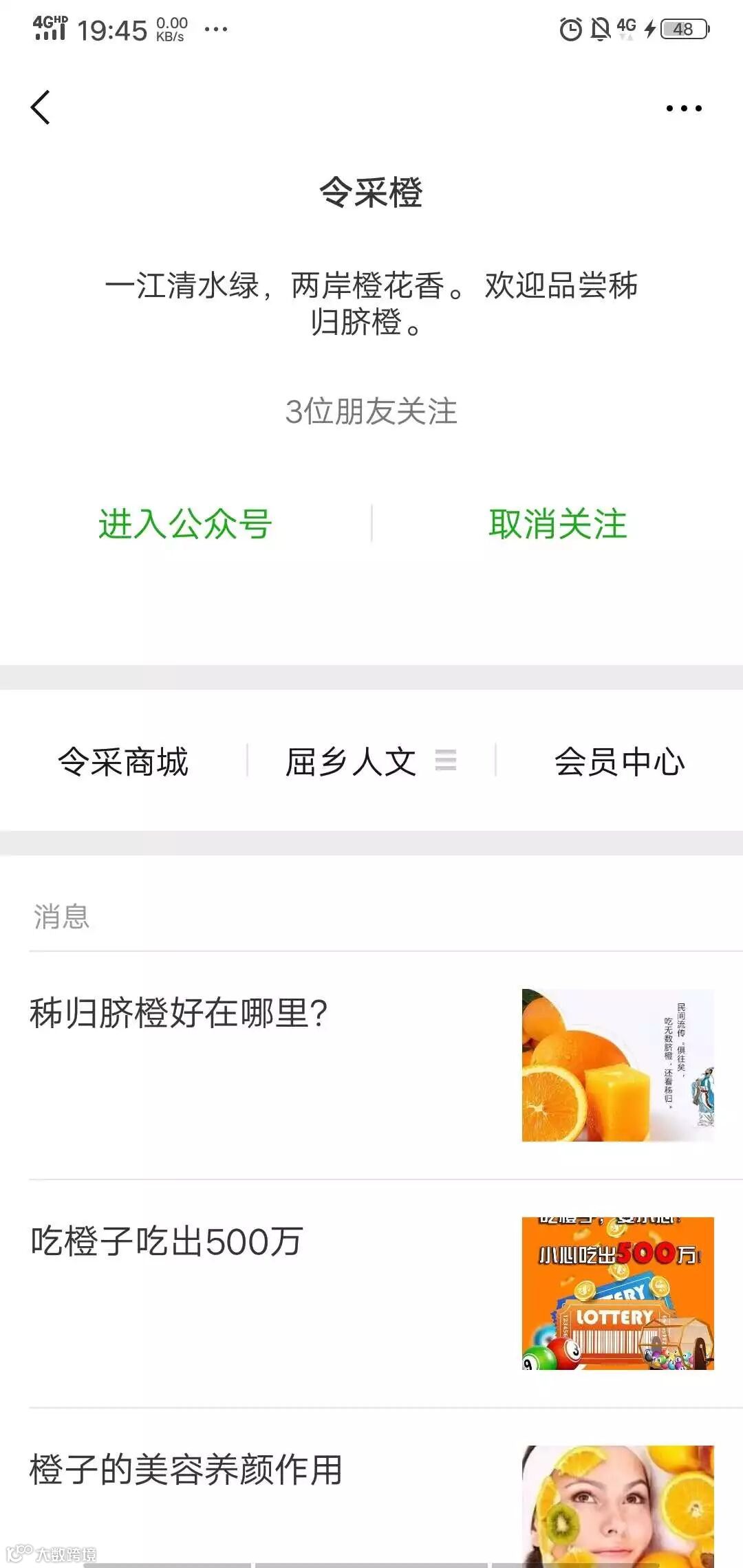 “令采橙”主打生鲜水果,其目标人群是爱好脐橙、追求身体健康的普通人群。针对这种情况,“令采橙”利用公众号,不定期的为用户推送优惠和养生类内容,从而提升商城粉丝的黏性,促进商城成交量的上涨。