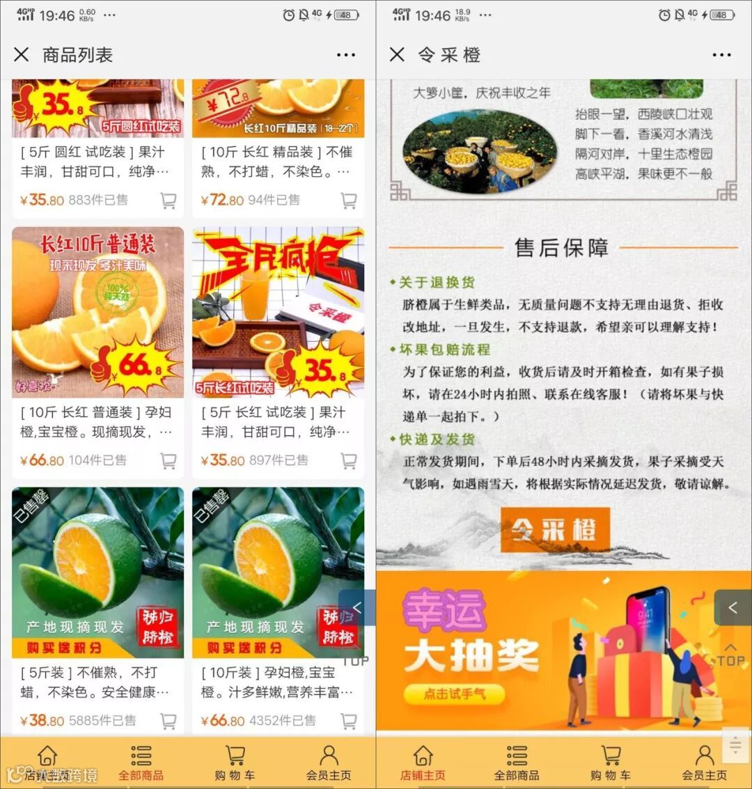 新鲜、健康、便宜一直是用户购买水果的核心需求。为了使粉丝享受到物美价廉的脐橙,“令采橙”在商城内设置了打折促销活动,推出“试吃装、普通装、精品装”的打折促销活动,并在此基础上,设置了“坏果包赔”流程,使粉丝在买得放心的同时可以吃得放心,从而有利于增加用户对商城的认可度和好感度。