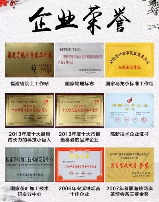福建安溪铁观音集团股份有限公司是一家集乌龙茶种植、加工、生产、销售、科研及茶文化传播为一体的现代企业。公司是福建省地方标准《安溪乌龙茶》、国家标准《原产地域产品 安溪铁观音》的参与制定企业,2008年作为乌龙茶国际标准专家组唯一企业成员单位,参与乌龙茶国际标准的制定。