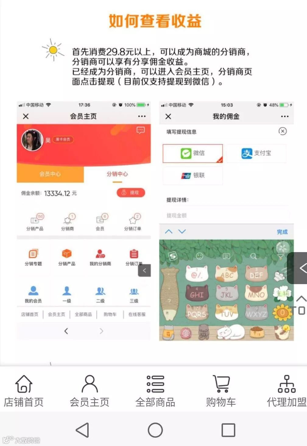萝卜丁童品商城,借用启博的微分销,在商城里设立了分销申请,用户在商城消费满29.8元以上,即可成为商城的分销商,享有分销佣金和“自用省钱,分享赚钱”的权益。对比其他家,萝卜丁童品商城的分销商门槛低,享有的权益高,更容易刺激分销商将产品推广出去。