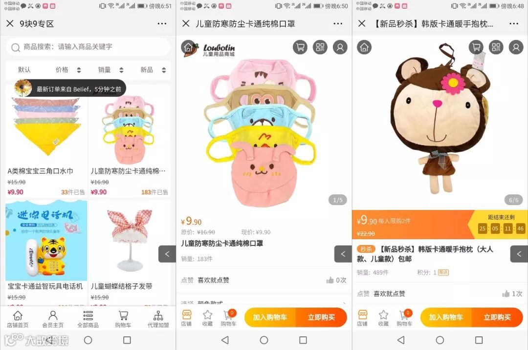 综上,虽然都是“9.9元包邮”,但是由于分销商,商家可以借用社交关系链,迅速将商城里的产品推广出去。与其他商家相比,萝卜丁童品商城在营销成本和获客成本上,花钱更少效果更好,这使得它在开展其他活动上有更多的施展空间。