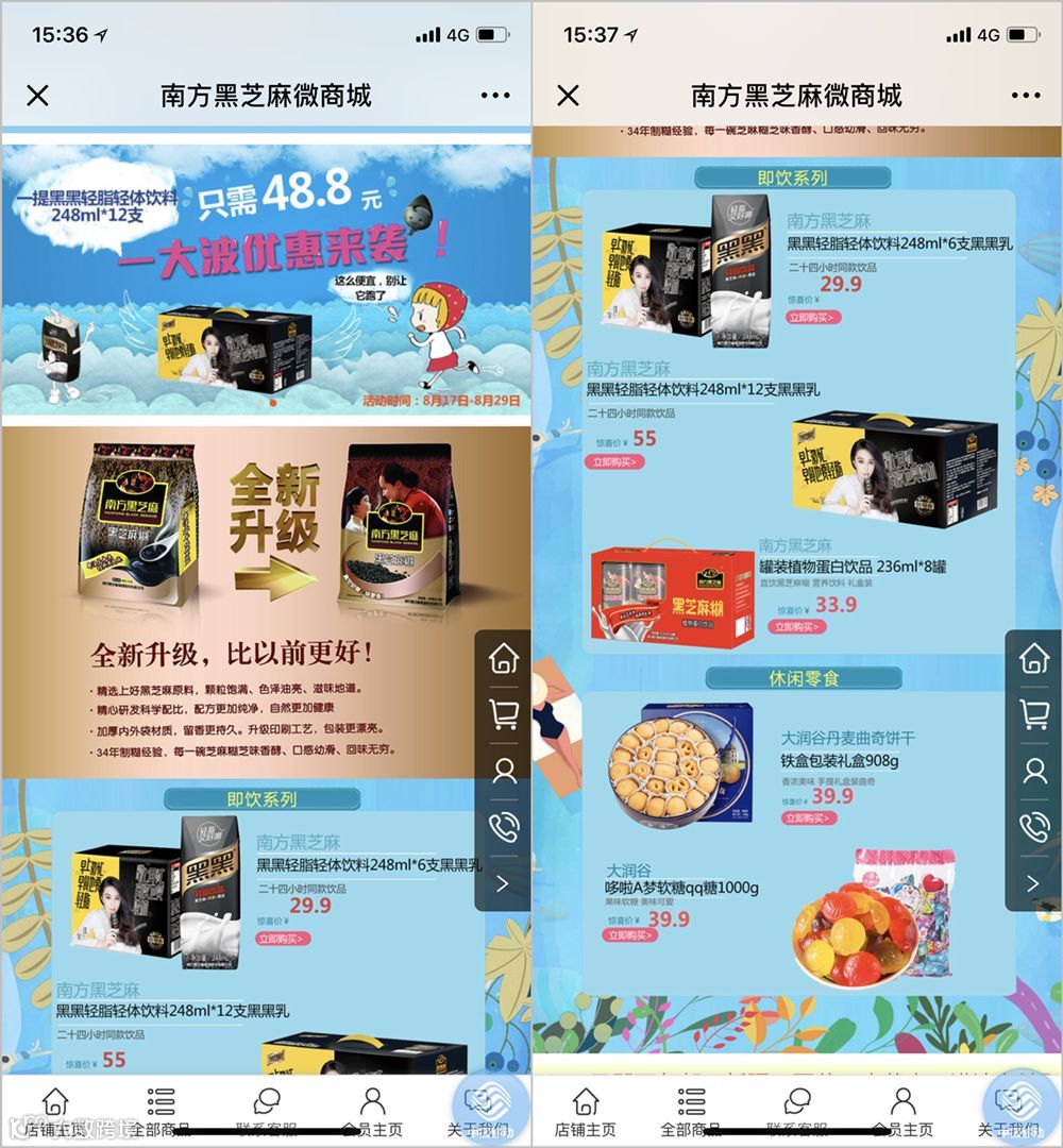 “南方黑芝麻糊微商城”对经典产品黑芝麻糊进行了全新升级,不仅是包装上的升级,更增加了黑芝麻糊的系列产品,在更多方面满足用户需求,提升产品竞争力。