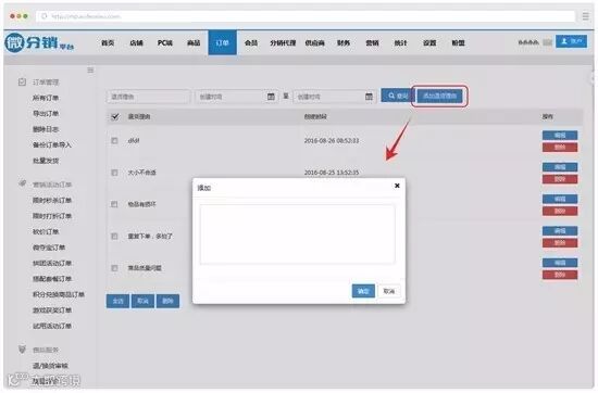 操作:订单----退货理由----