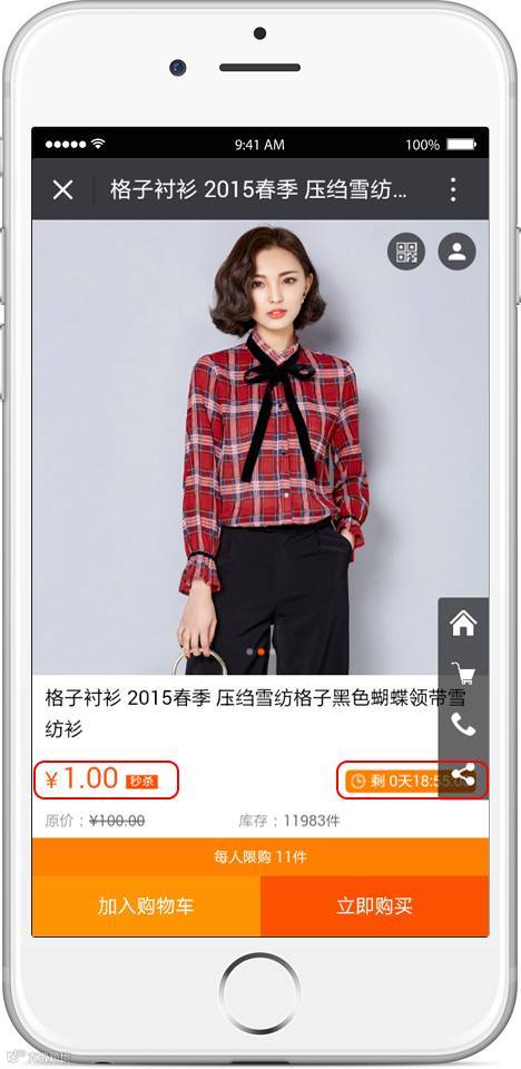 操作:选择活动中的商品,才会显示正常,不是活动商品,就显示活动已结束;拼团活动不参与。