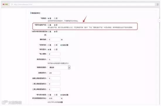 操作:编辑商品的时候,选择免物流-----是否为虚拟商品--
