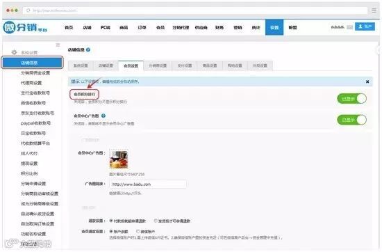操作:设置---店铺信息----会员设置----