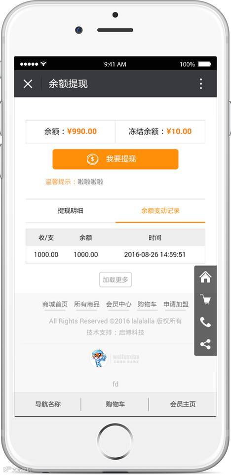 会员中心“余额提现”里增加“余额变动记录”