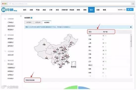 会员统计增加对地区和性别的统计