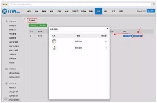 后台微助力“参与排名”里增加“助力详情”