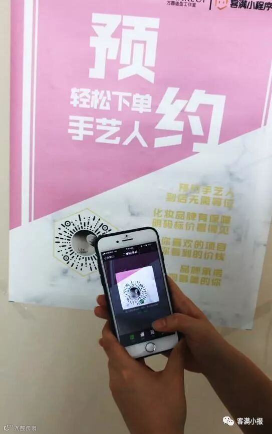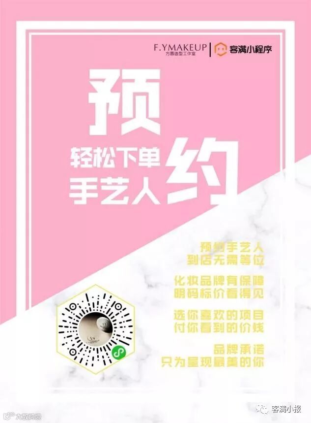 顾客通过扫码线下海报上的太阳码,找到方圆工作室,并提前预定体验一对一的专业贴心服务。