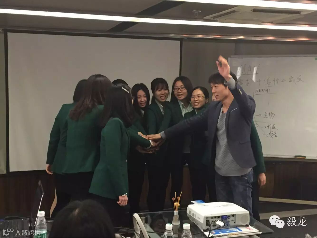 紧接着热舞的环节后,tina作为本次会议的主持人,走上了舞台,介绍了本次会议的目的——认可小伙伴们为百团大战20多天的努力,接下来的日子该如何冲刺。